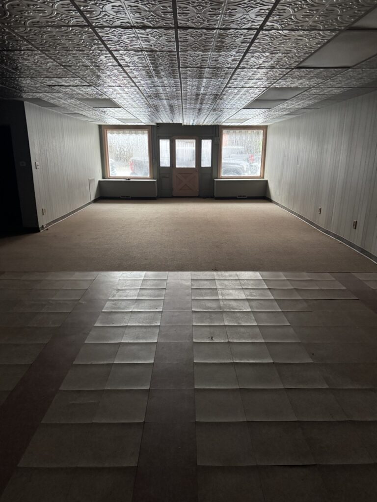4000sqft Commercial Building with Business Space on Main Floor, Apartment Living Space Upstairs and Full Basement for Storage. MAIN FLOOR has 2000sqft consisting of a Large Retail or reception area 55×19 with 4 additional rooms and restroom. Three spaces are 6×9, a 9×12 bathroom and additional 22 x 12 space. APARTMENT has 2000sqft consisting of a 16×28 Living Area, 17×15 Bedroom, 12×11 Bedroom with Bath and 12×14 Kitchen. BASEMENT consists of 2000sqft of storage space and mechanicals…..